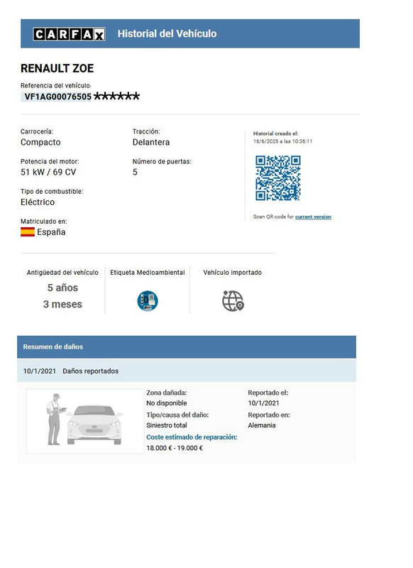 He comprado en mayo de 2025 un Zoe 50 en Expoauto de Tarrasa y me han dado un coche importado de Alemania y con siniestro total. No me avisaron de que era importado ni de que habia tenido un siniestro total. Lo compre con 53.000 km.