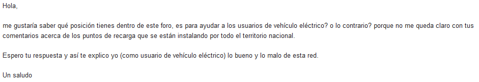 - ¿Respecto a qué puntos de recarga son los que mis comentarios inducen a duda? Si se miran mis comentarios respecto a redes serias como las de Easy Charger o EDP, se verá que son todo parabienes. De la red de Iberdrola tengo más bien una opinión normal a secas, y la de Ibil no la toco ni con un palo a la vista de las experiencias de otros usuarios. Y luego está lo que considero directamente insultos, que no redes, como el punto de Endesa que cobra a 72 céntimos el kilowatio o el de este grupo de armarios de Wenea que eso si, han pedido todos subvenciones a la vista de las pegatinas. Hay un comentario mío en este mismo hilo en el que opino que si esta empresa ha puesto únicamente su capital en montar este tinglado, no tengo más que pensar. Pero es que las pegatinas de los armarios dicen lo contrario, y eso aunque no fuera usuario de vehículo eléctrico, me afectaría.